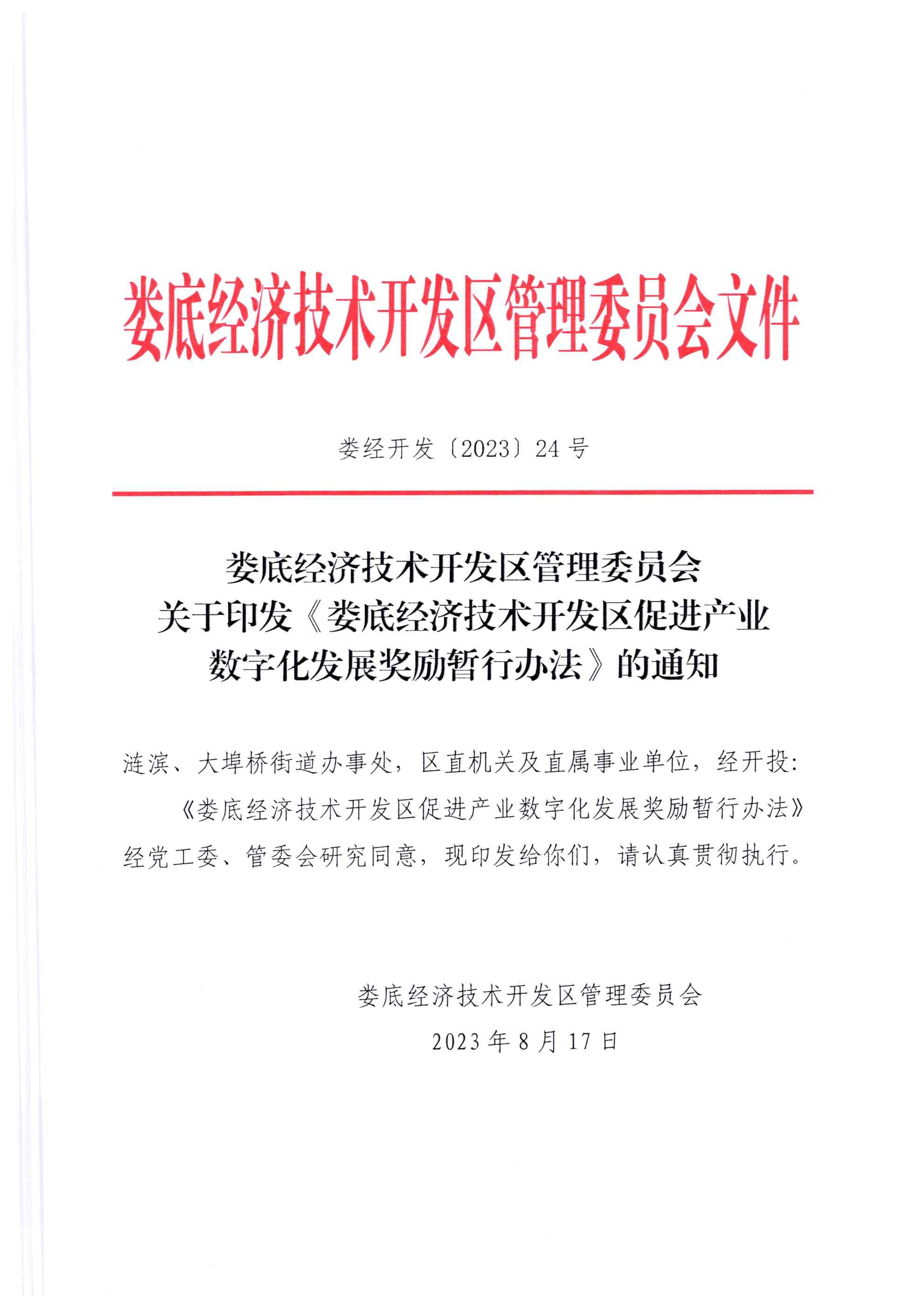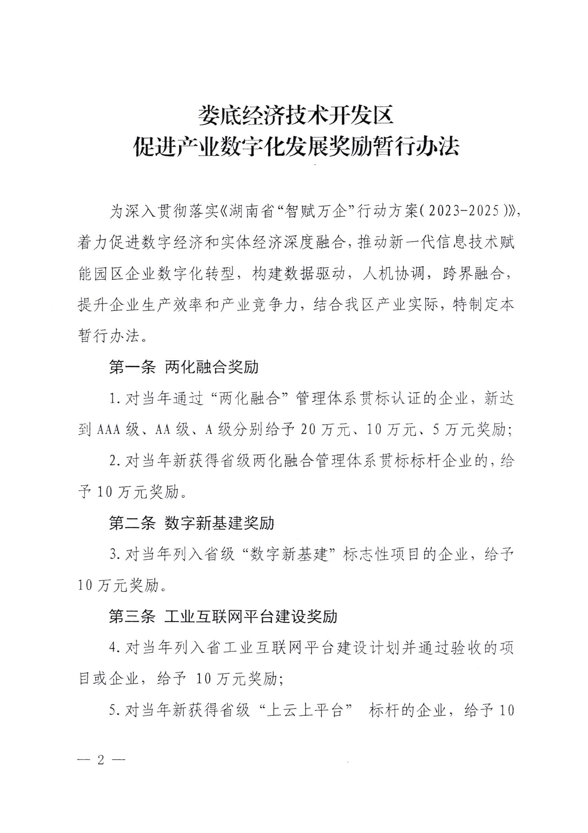 婁底經濟技術開發(fā)區(qū)管理委員會 關于印發(fā)《婁底經濟技術開發(fā)區(qū)促進產業(yè) 數(shù)字化發(fā)展獎勵暫行辦法》的通知