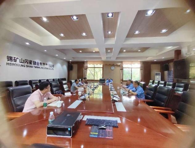 圖3 錫礦山閃星銻業(yè)領(lǐng)導(dǎo)向市企業(yè)“兩會(huì)”領(lǐng)導(dǎo)和冷水江市科工信局領(lǐng)導(dǎo)介紹企業(yè)生產(chǎn)經(jīng)營(yíng)情況