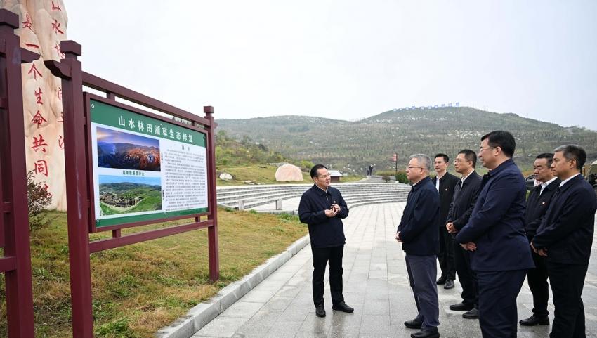 (10月9日,沈曉明來到冷水江錫礦山,實(shí)地察看礦山修復(fù)、尾礦庫(kù)治理、銻污染河道治理等工作。)