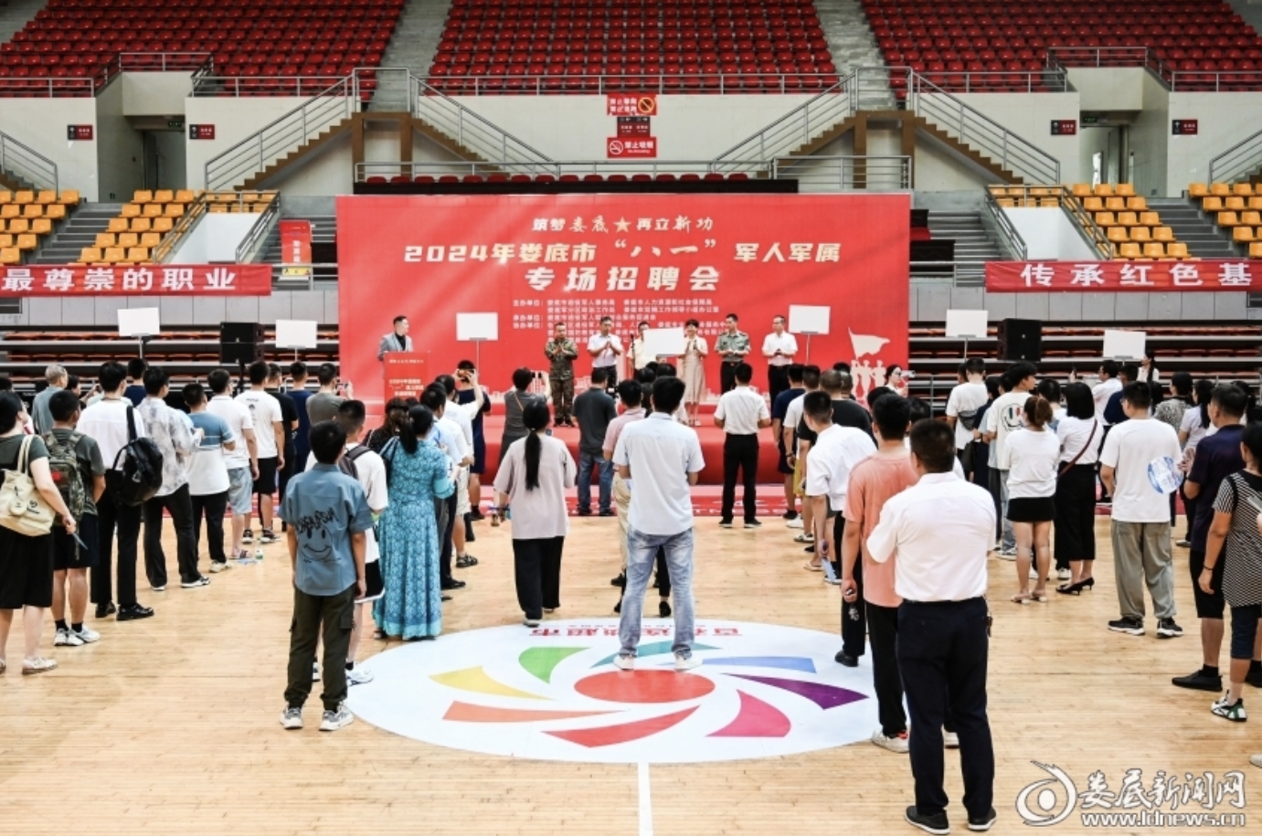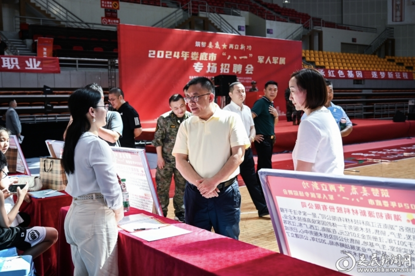 (8月2日,婁底市“八一”軍人軍屬專場招聘會(huì)在婁底市體育中心體育館舉行)